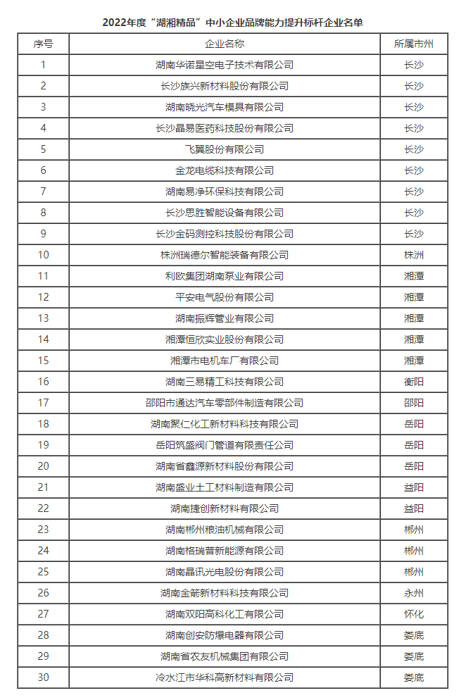 通知 | 關于公布2022年度“湖湘精品”中小企業(yè)品牌能力提升標桿企業(yè)的通知