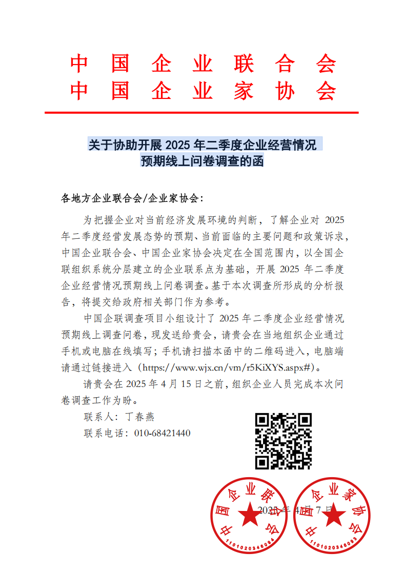 關(guān)于協(xié)助開展2025年二季度企業(yè)經(jīng)營(yíng)情況預(yù)期線上問(wèn)卷調(diào)查的函