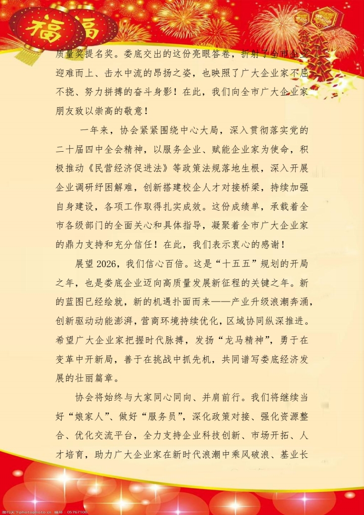 婁底市企業(yè)聯(lián)合會、婁底市企業(yè)家協(xié)會2026年新春祝辭