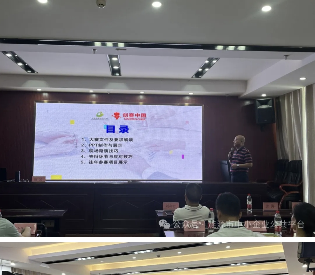 活動(dòng)開始,漣源市中小企業(yè)服務(wù)中心主任先作了動(dòng)員報(bào)告,隨后,湖南旺達(dá)集團(tuán)導(dǎo)師憑借深厚的比賽經(jīng)驗(yàn)與知識(shí)儲(chǔ)備,對(duì)湖南省工業(yè)和信息化廳《關(guān)于舉行2024年“創(chuàng)客中國(guó)”湖南省中小微企業(yè)創(chuàng)新創(chuàng)業(yè)大賽的通知》進(jìn)行了深度解讀,并圍繞參賽條件、評(píng)分標(biāo)準(zhǔn)、賽前籌備、PPT的內(nèi)容制作和要點(diǎn)、現(xiàn)場(chǎng)展示與演講、答辯技巧等方面展開,為各參賽企業(yè)代表呈現(xiàn)了一場(chǎng)內(nèi)容詳實(shí),干貨滿滿的知識(shí)盛宴。