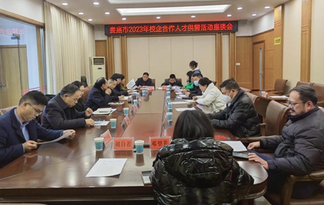 為貫徹落實湖南省“三高四新”發(fā)展戰(zhàn)略,全面推動婁底中部地區(qū)“材料谷”建設(shè),助力婁底中小企業(yè)紓困增效,助力人才集聚,促進經(jīng)濟發(fā)展。2023年2月13日下午,“婁底市 2023 年校企合作人才供需活動座談會”在婁底市企業(yè)聯(lián)合會、企業(yè)家協(xié)會召開。婁底市人民政府原副市長、市企業(yè)聯(lián)合會、企業(yè)家協(xié)會會長余明庭出席并講話,市工信局二級調(diào)研員潘曉燕、市人才發(fā)展服務(wù)中心主任劉偦、湖南人文科技學院、婁底職業(yè)技術(shù)學院、婁底瀟湘職業(yè)學院等院校招生就業(yè)處負責人以及各縣市區(qū)企業(yè)家協(xié)會負責人參加此次座談會。